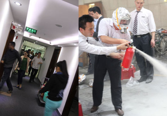 培训内容主要有怎样排查容易引生气灾的消防清静隐患、高楼爆发火灾自救、办公电器设施装备准确使用、火情紧迫情形处置惩罚、判别灭火器是否有用和准确使用要领、防烟面具的使用要领、火灾应急疏散知识等,,,,,并组织了疏散演练。。。。。。。。