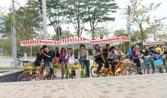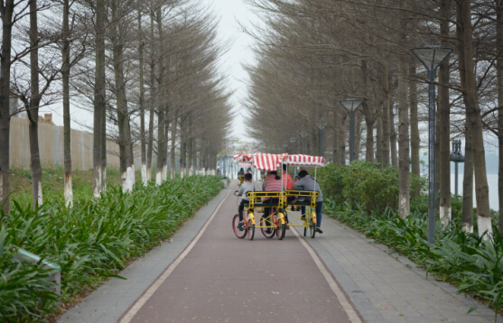 品尝美食后,,,,,,,前往海珠区生物岛,,,,,,,最先自行车环岛之旅。。。。。。。。各人各自租个自行车,,,,,,,骑上环岛嬉戏,,,,,,,既能磨炼身体,,,,,,,又能鉴赏到漂亮的江景,,,,,,,真是再惬意不过!各人以为世间的一切骚动都远离而去,,,,,,,只剩下耳畔的风和眼前的江水。。。。。。。。在欢喜的气氛中,,,,,,,我们竣事了此次愉快的运动。。。。。。。。