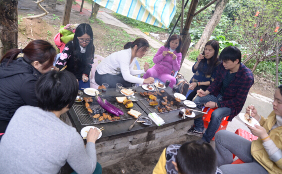 烧烤现场热闹特殊,,,,,,,各人配合默契,,,,,,,有的穿串、有的烤制,,,,,,,烧烤配料和零食富厚多样,,,,,,,各人在一片欢声笑语中配合品尝美食。。。。。。。。
