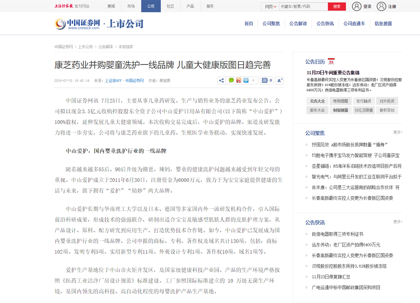 审查详情7月25日,,,,,腾博官网诚信为本,专业服务药业宣布通告,,,,,公司拟以现金3.5亿元收购控股股东全资子公司中山敬重日用品有限公司100%股权,,,,,延伸生长儿童大康健领域。。。。。